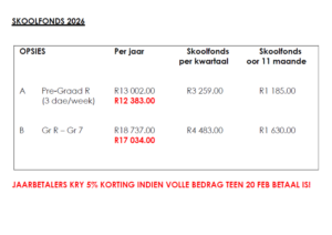 Hier is vir elkeen ‘n plekkie om sy/haar indentiteit uit te leef. Goeie ouer-onderwyserverhouding is vir ons belangrik en ons streef daarna om gelukkige kinders te vorm.